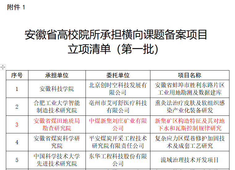 近年来,我院全面落实主责主业,充分发挥省级科研平台与传统地勘单位技术优势,聚焦煤矿安全生产实际需要,积极推动科技成果就地转化,在服务地方经济社会发展战略中不断加强理论创新与关键技术突破。该项目作为安徽省第一批高校院所承担横向课题备案项目立项,是我院科研管理与科研团队建设取得的一项标志性成果,并将进一步推动我院以更高质量和更高水平科技创新为地方发展赋能。