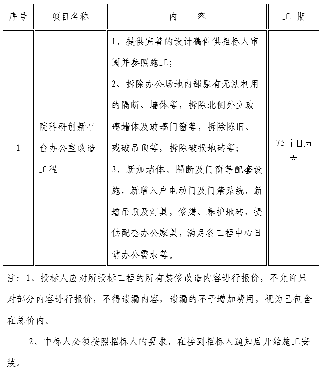 根据我单位所属绿色矿山工程研究中心等科研平台办公场所的需要,现对我院科研平台办公室改造工程项目进行国内公开招标,欢迎具备条件的投标人前来报名。
