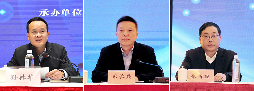 图为孙林华致辞、宋长兵主持会议、张新程作总结讲话