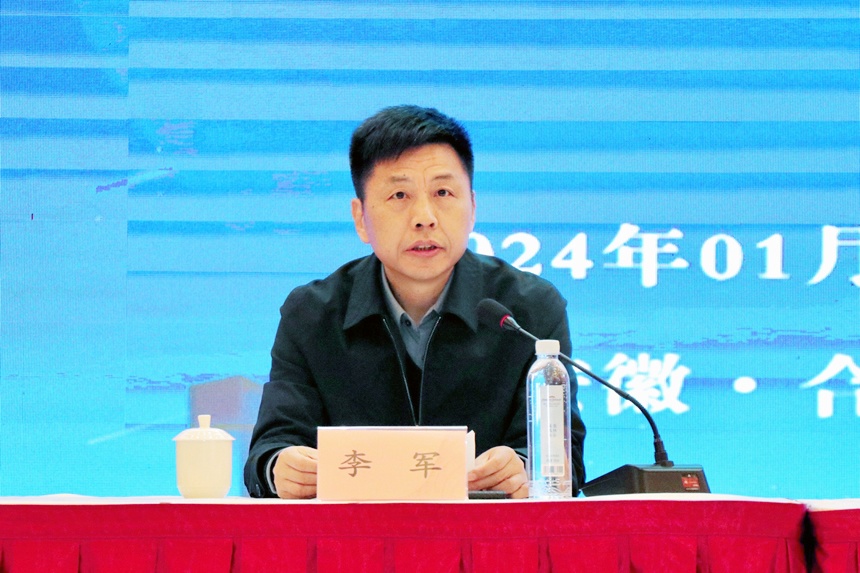 图为李军出席会议并致辞