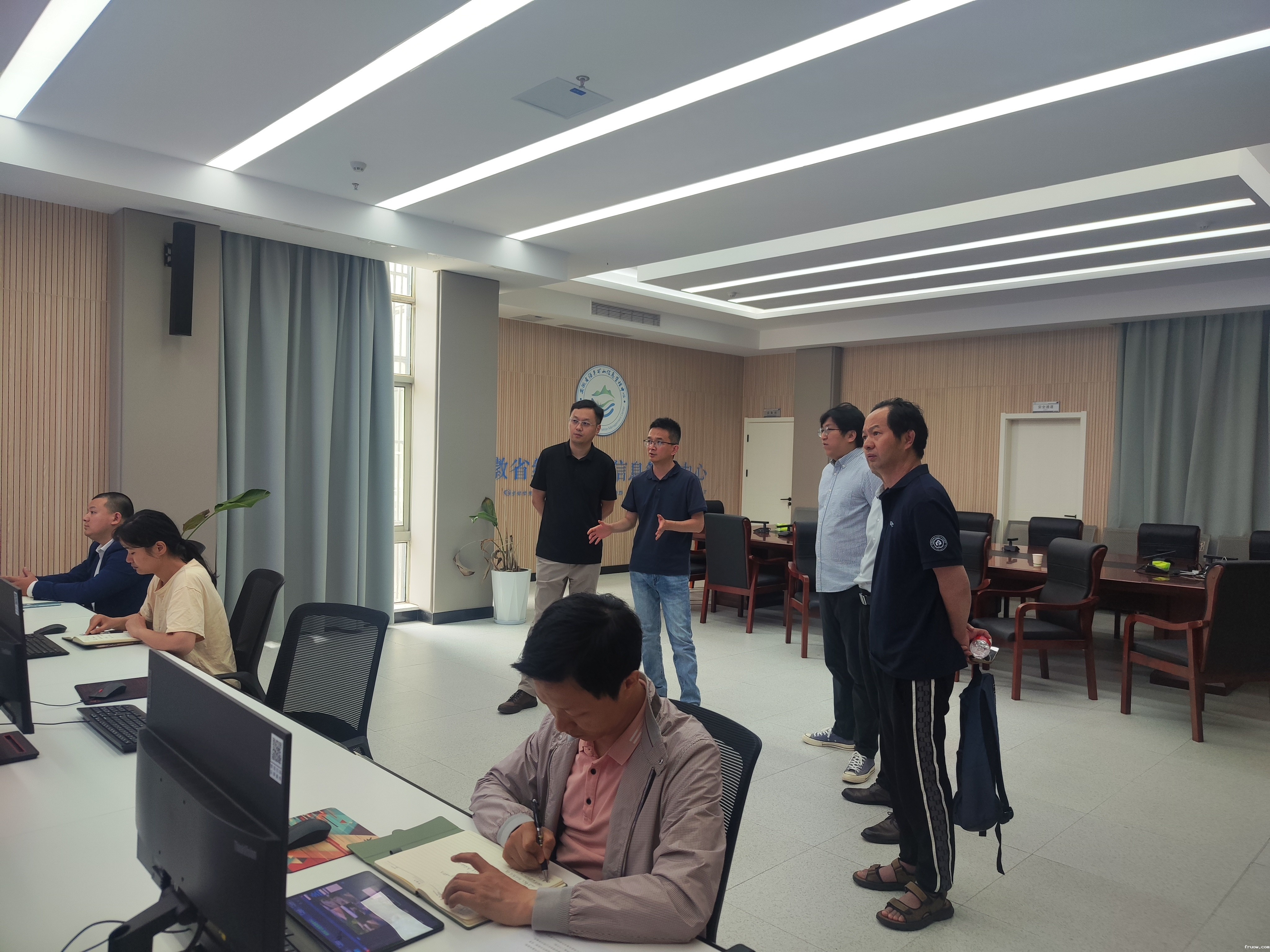 座谈会后,调研组赴“安徽省煤田地质科研创新基地”实地参观了我院近年重要的科技成果转化项目—安徽省绿色矿山信息管理平台,该平台深度融合物联网、大数据与人工智能技术,具备矿山生产及环境的实时监测、开采流程智能优化等核心功能,能够为绿色矿山建设提供全流程、数字化的解决方案,在提升资源利用效率、减少生态环境破坏等方面成效显著,调研组对该平台相关成果转化的创新性、实用性给予了高度评价。