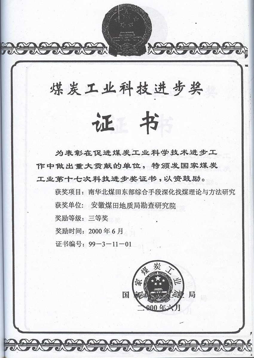 《南华北煤田东部综合手段深化找煤理论与方法研究》-煤炭工业科技进步奖
