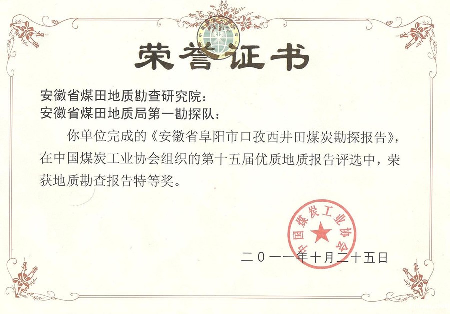 《安徽省阜阳市口孜西井田煤炭勘探报告》-中国煤炭工业协会优秀地质报告