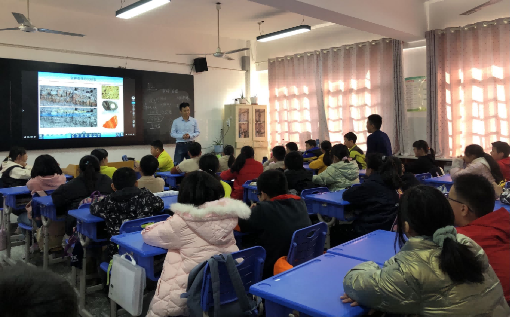 图为方惠京博士讲解《认识炫丽岩石,探索宝贵油气》